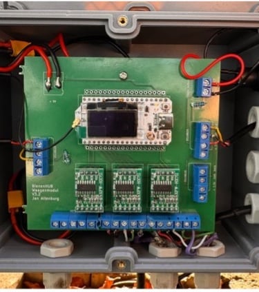 Mein Projekt unterteilt sich in zwei Systeme, den BienenHUB und den BienenCounter. Der BienenHUB ist ein selbst entworfenes System, das Temperatursensoren und Waagen kombiniert und den Imker über die Menge an Honig im Bienenvolk informiert. Der BienenCounter ist ein Ki-basiertes System, welches Flugbienen überwacht und Bienenschwärme sowie Räuberbienen erkennen kann.